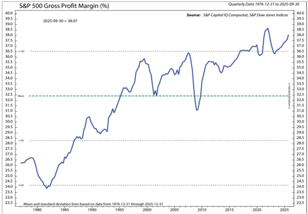 For Q4 2025, according to FactSet’s January 16th Earnings Insight, the estimated year-over-year earnings growth rate for the S&P 500 is now +8.2%, the tenth straight quarter of growth. Revenue is expected to grow +7.8%, the second highest rate since 2022 and the 21st consecutive quarter of growth. Expectations continue to support acceleration through 2026 and with breadth improving. For Q1 2026, analysts are projecting earnings growth of 12.2% and +14.9% for the calendar year (Chart 5).